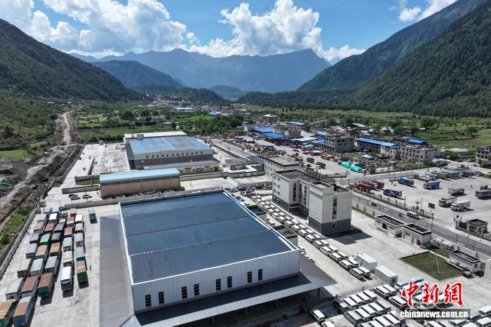 2025年5月25日,随着边境贸易的发展,西藏吉隆沟达曼村附近的物流园区已具规模。(无人机画面)贡嘎来松 摄
