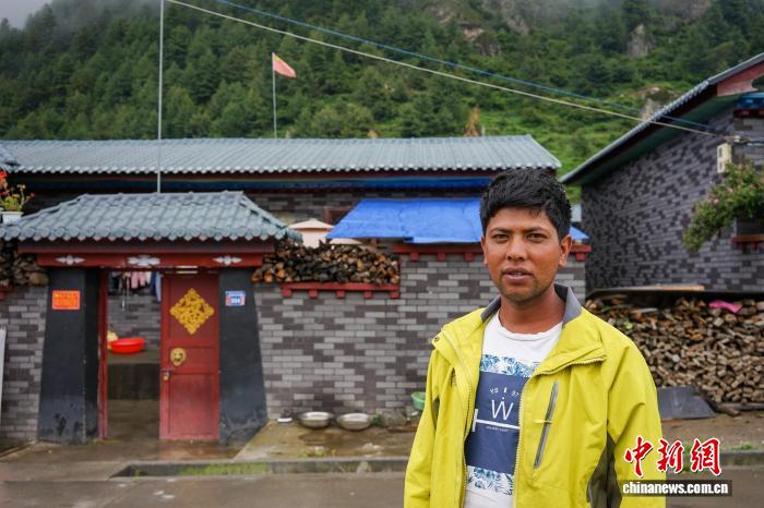 2020年6月24日,西藏吉隆达曼村村民莫达在自家的院落前。(资料图)中新社记者 江飞波 摄