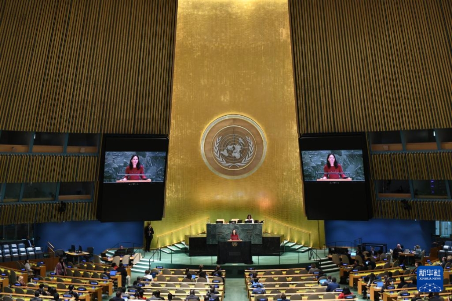9月29日,在位于纽约的联合国总部,第80届联大主席贝尔伯克在发表联合国大会一般性辩论闭幕致辞。新华社记者李睿摄