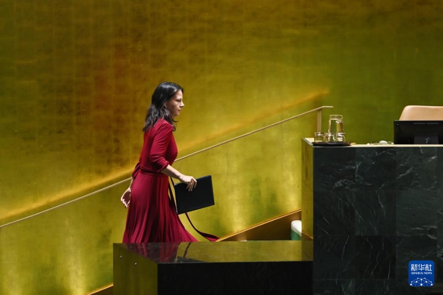 9月29日,在位于纽约的联合国总部,第80届联大主席贝尔伯克在发表联合国大会一般性辩论闭幕致辞后离开。新华社记者李睿摄