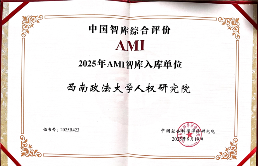 此外,西南政法大学人权研究院还在本次评选中入选“2025年AMI智库入库单位”,是该院在中国特色新型智库建设方面再次获得的权威认可。