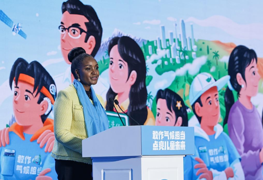 11月20日,联合国儿童基金会驻华代表桑爱玲在活动上致辞。新华社记者 张玉薇 摄