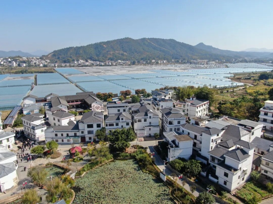 2025年11月21日,“人权行动看中国·2025”江西行活动参访团来到江西赣州。图为航拍潭头村秀美风光,不远处便是富硒蔬菜大棚。 中新社记者 刘力鑫 摄