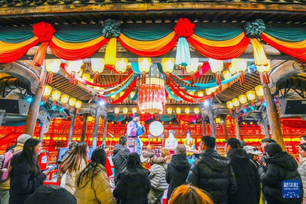 1月24日,游客在河北省唐山市丰南区河头老街景区观看演出。新华社发(刘满仓摄)