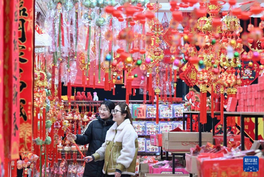 1月25日,市民在河北省石家庄市义堂年货市场选购春节饰品。新华社发(陈其保摄)