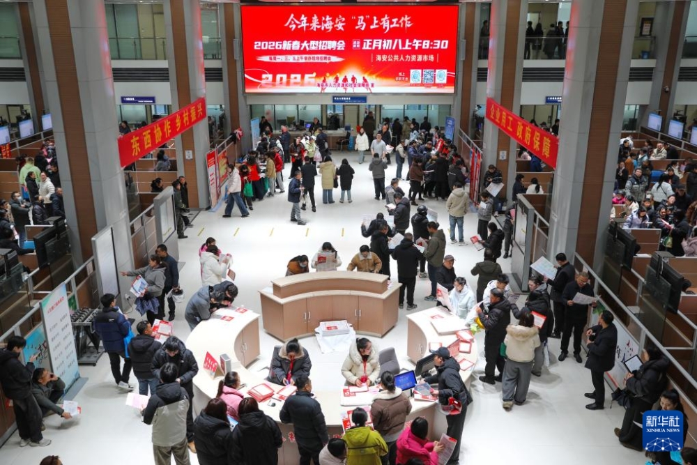 这是2月24日拍摄的江苏省海安市2026春风行动暨就业援助季专场招聘活动现场。新华社发(顾彬斌 摄)