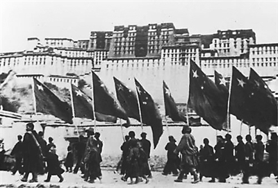 1951年10月26日,西藏地方政府为人民解放军举行了隆重的入城式,拉萨古城飘扬着五星红旗。新华社发