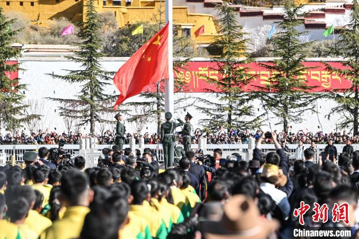 初春的拉萨阳光和煦,布达拉宫广场氛围庄严肃穆。身着节日盛装的农牧民、披着绛红色僧衣的僧尼,各族各界代表整齐排列。队伍中,既有亲历民主改革的老人,也有朝气蓬勃的"10后"青少年代表,他们共同追忆历史,展望未来。