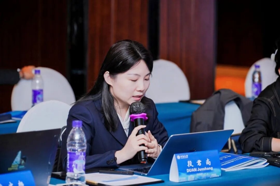 王欣怡发言的题目为《联合国人权理事会视角下美国单边制裁的规制争议研究》。她指出,近年来美国单边制裁不断升级,引发国际社会对制裁合法性和人权影响的严重关切。她认为核心争议集中在两方面:一是美国以“效果原则”扩张域外管辖权;二是次级制裁将美国国内法强加于第三国。她强调,美国单边制裁在目标上常以人权为名行地缘竞争之实,手段上具有选择性和双重标准,结果上系统性破坏国际司法独立,既不合理也不合法。她指出,现有规制体系存在三大疏漏:一是规则碎片化、约束力薄弱;二是次级制裁引发“过度遵守”;三是受害者缺乏有效救济渠道。为此,她提出:一是推动《制裁、合规和人权指导原则》等软法落地,并探索制定具有约束力的国际公约;二是以技术赋能构建国家、区域、国际三级救济网络,创新争端解决机制;三是倡导全球制度性权力再平衡,提升全球南方国家在规则制定中的话语权。