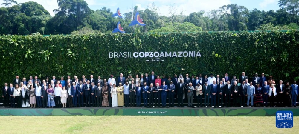 11月7日,与会嘉宾在巴西贝伦气候峰会上合影。新华社发(卢西奥·塔沃拉摄)