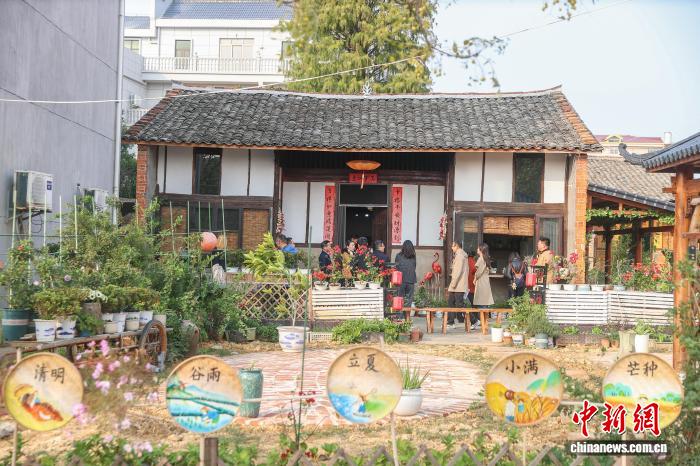 图为游客在湖陂村的福气小站喝咖啡,这是一家由老房子改造而成的乡村咖啡店。中新社记者 刘力鑫 摄