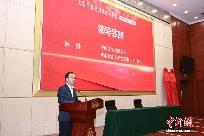 图为西南政法大学党委副书记、校长林维致辞。中新网记者 何蓬磊 摄